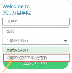 3下拉框中选择“校园网(仅访问学校资源)”,点击连接即可